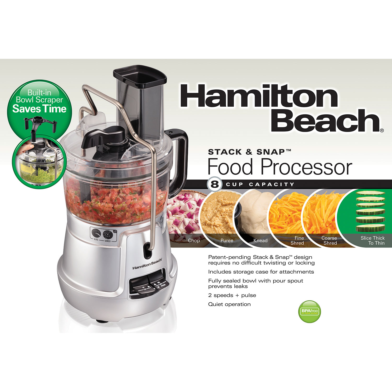 Hamilton Beach 8 Cup Stack Snap Food Processor With Bowl