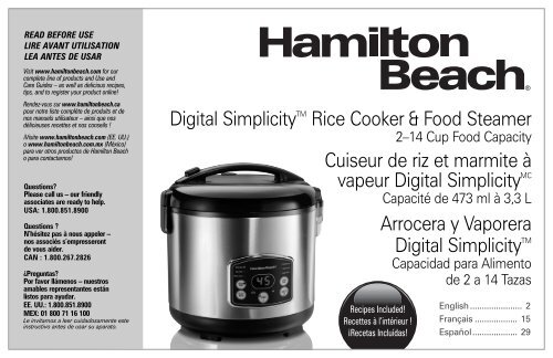 Hamilton Beach Digital Simplicity 2 14 Cup Rice Cooker And